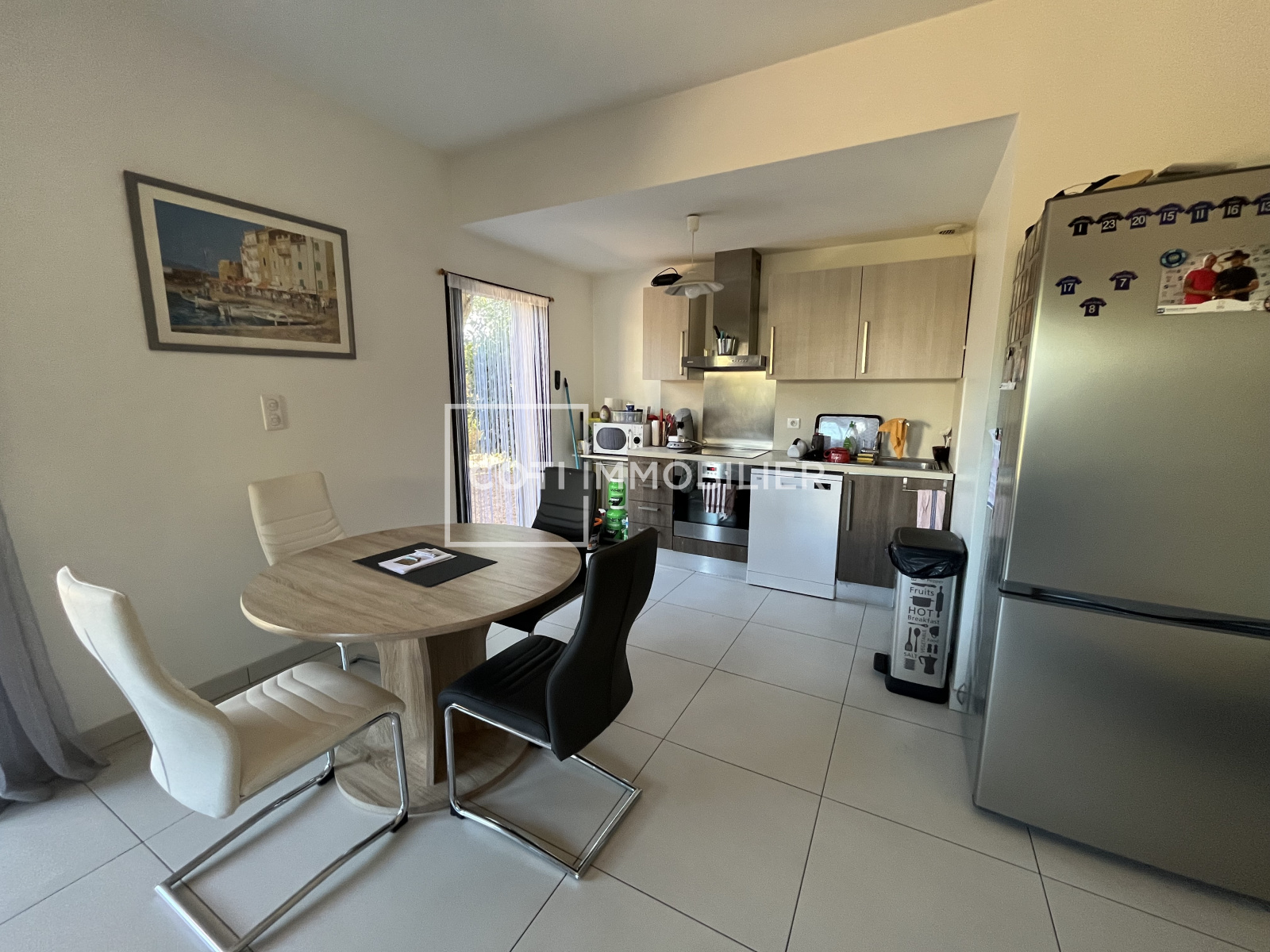 Une cuisine ouverte sur le séjour offrant un accès direct au jardin privatif