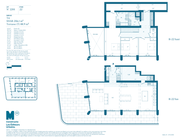 4 PIECES EN DUPLEX 22EME ETAGE AVEC TERRASSE - 206.1m²