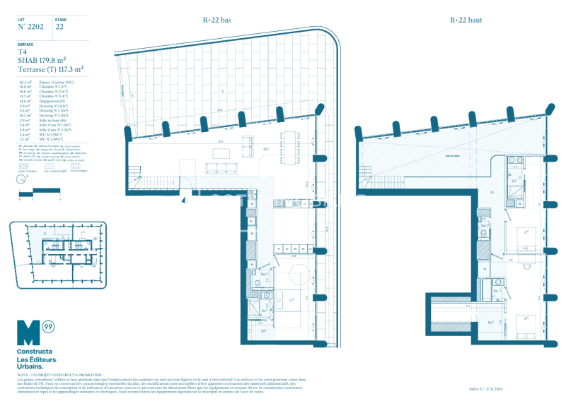 4 PIECES EN DUPLEX 22EME ETAGE AVEC TERRASSE - 179.8m²