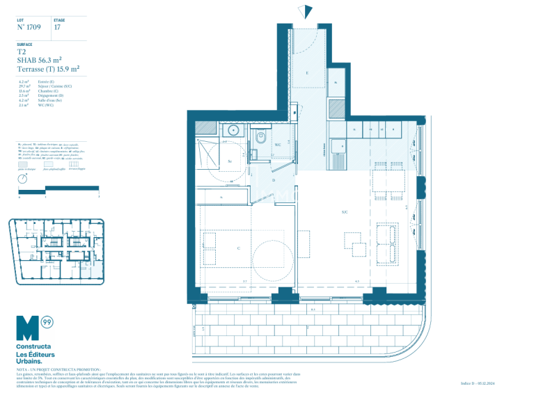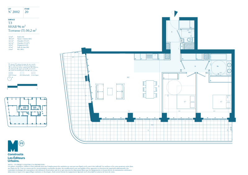 4 PIECES EN DUPLEX 22EME ETAGE AVEC TERRASSE - 126.1m²