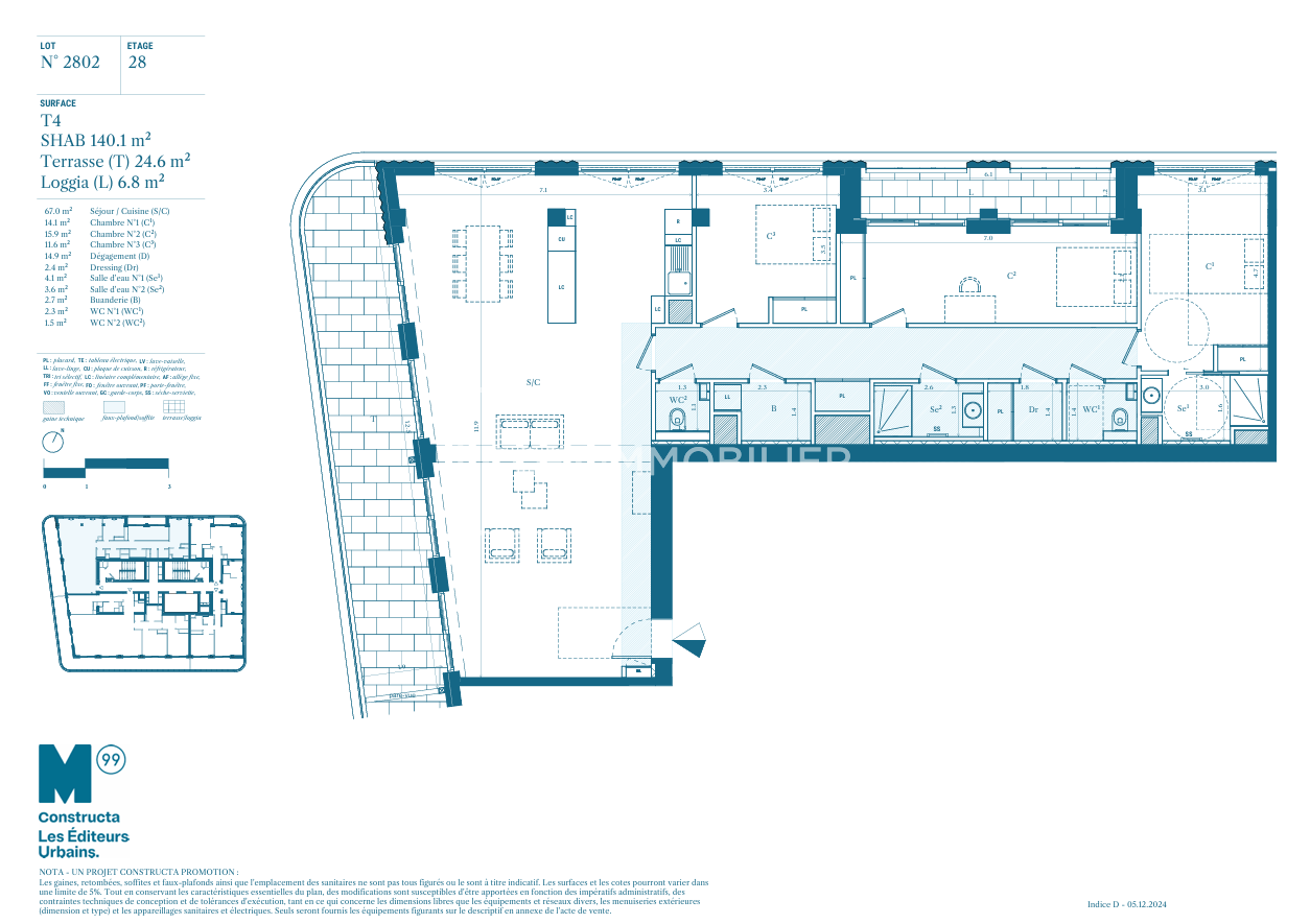 4 PIECES 28EME ETAGE AVEC TERRASSE - 140.1m²
