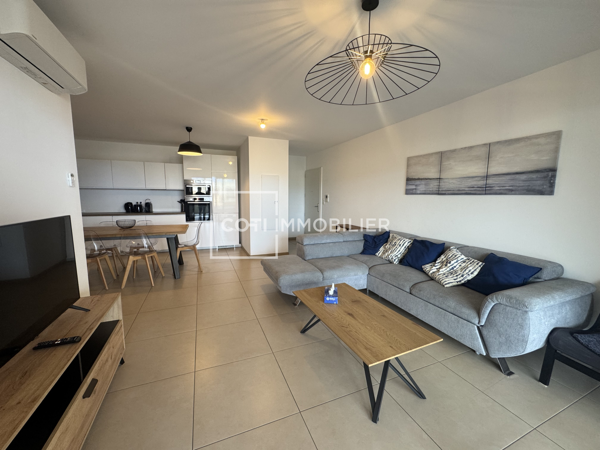 Dans une résidence prisée avec accès direct à pieds à la plage, découvrez ce magnifique appartement T3 de 83,07 m², vendu entièrement meublé, alliant confort, espace et prestations de qualité.