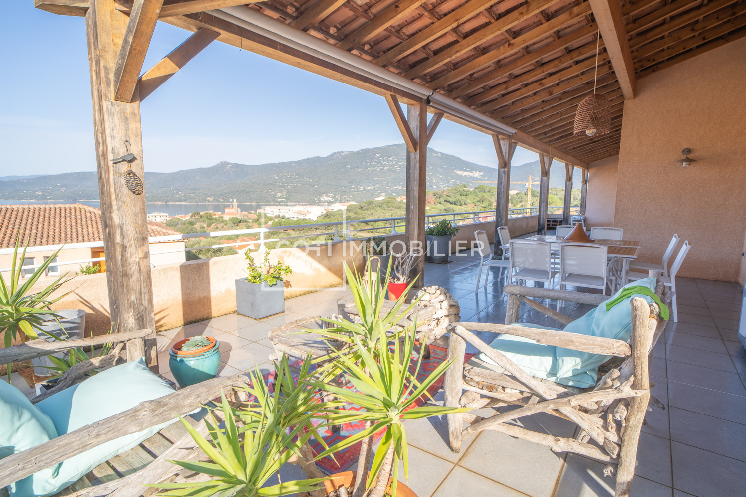 Exceptionnel, à quelques encablures des plages et du port de PROPRIANO, l'agence COTI Immobilier a le plaisir de vous présenter ce très bel appartement au 1er et dernier étage. Il se situe dans une coquette copropriété entretenue et dotée d'une belle piscine commune. L'appartement de type 4 de 102 m2 dispose d'un accès indépendant et de très beaux volumes. Côté jour, vous découvrirez un séjour avec sa cuisine américaine entièrement équipée et sa pièce de rangement très pratique. Côté nuit, trois chambres, un dressing, une salle de douche et un toilette indépendant seront à votre disposition. Toutes ses pièces s'ouvrent sur une spacieuse terrasse de plus de 85m2 avec une très belle vue mer sur le Golfe du Valinco. Quiétude et havre de paix pour y vivre à l'année ou y séjourner le temps des vacances. Vous disposez également de deux emplacements parking extérieurs privés et numérotés. Venez en notre compagnie visiter ces lieux sans plus attendre. Agence COTI IMMOBILIER, 4 rue Camille PIETRI 20110 PROPRIANO tél : 04 95 500 500 info@cotiimmobilier.com